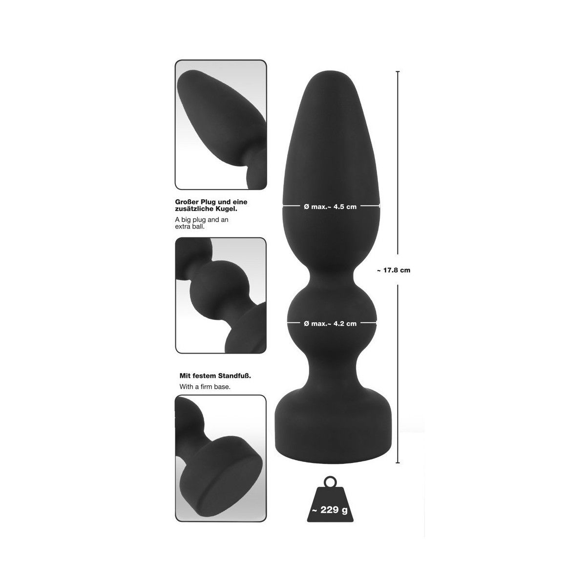 Il silicone liscio e elastico facilita l'inserimento, mentre la base ampia assicura una posizione sicura.